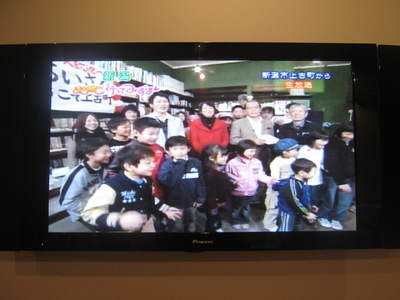 生放送も終わりに近づいた頃に、うちのスタッフのムック隊長が「ヨウイチさん、ちょっと行ってきます!!テレビ見てて下さい!!」と撮影現場の3番町「ワタミチ」に向い走って行ったのです。