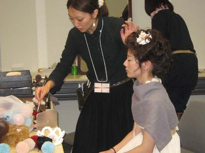 本番開始2時間前。ヘアメイクも急ピッチ。