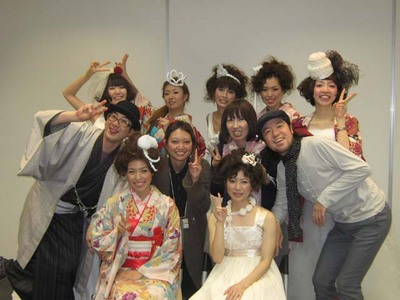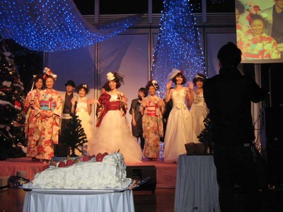 で、ショーの写真がなーーい!!!後日、プロが撮ったデータを貰ったらUPしますね。キャンドルもって歩いたり、白無垢で登場してかわいいキモノにチェーンジ!とか、ステージ上で長い髪をバッサリカットとか、キモノ × ドレスのニュースタイル提案とか、いろいろやったのです。
