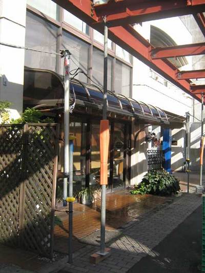 さて、一昨日と昨日の深夜にワズ前の大工事が行われまして アーケードの骨組みが完成でございます。 じゃーん!!ワズ前で、上を見上げた写真です。 ゴツいなー、骨組み。 早く屋根が付いてくれ・・・ で、このアーケードを支えてる仮のパイプなんですが・・・ これ、大丈夫なの?怖っ・・ で、気分一新、正面ディスプレイもお着替えさせました。 ちょいと大人なシックな小紋。 んー、良いです。 では、よろしくです。