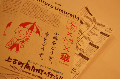 えー、ワズのあります 上古町商店街 ですが、 また変な(笑)イベントです。 カミフルアンブレラ 上古町 × 小路 × 傘 詳しくはこちら こんな傘です。 よろしくです。 昨夜は ここ のオーナーさんが我が家に来まして、宅呑みしながらカメラの事をいろいろと教えてもらいました。 僕も こんな写真 がとれるようになりてーー!!のです。 僕も SURIKEN をこんなに素敵に撮りてーー!!です。 では、よろしくです。