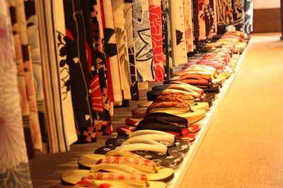 さて、今日もHanareは朝からフル稼働中。 天気が良くて最高ですね。 しかーし、上古町はGWにもかかわらず、 意外と・・人が・・歩いて・・いない・・ような・・ 気のせいだな・・ 気のせいにしよう・・ さて、店内はユカタだらけと連日ブログで書いていますが、 それに付随して小物類もたくさんなわけです。 今日はその中でも履物編。 ユカタ用の下駄がいっぱい。 3800円のリーズナブルな下駄もいっぱい。 メンズ用下駄や雪駄もいっぱい。 もちろん振袖や小紋用の草履もいっぱい。 いやー・・自分の店ながら・・いっぱいあるなー・・ GWも終盤戦。 是非上古町へ!! では、よろしくです。