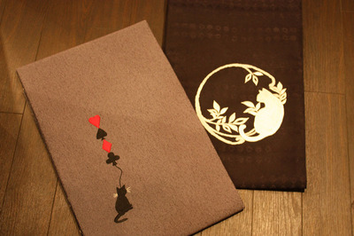 トランプ柄の方が50,400円(税込)で、黒地にネコと葉っぱの紋の方が39,900円(税込)です。上の画像に写ってるのがお太鼓部分。