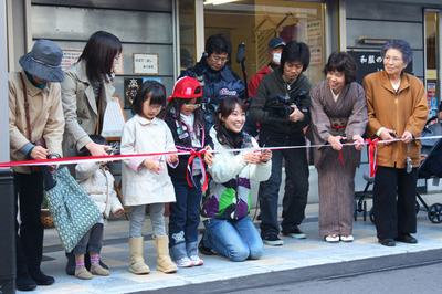 この場所だけのテープカットじゃないのです。上古町全部でテープカットしたのです。1番町から4番町まで、全てにテープを張り巡らせたのです。両サイドだから1キロくらいになるのかな?それをみんなでカット。
