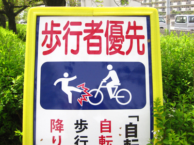 途中やすらぎ堤で「自転車にローキックしてる看板」発見。