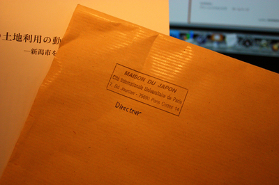 で、パリからの郵便なのに入っていたのは「新潟市を例に挙げた地方都市の事についての論文」でした 笑