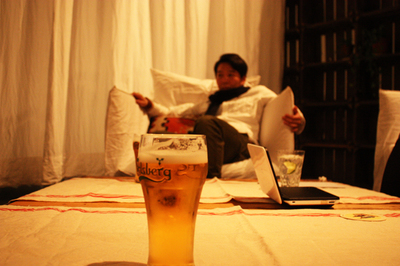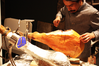ヒゲでロンゲのおっちゃん(M沼君)が切り分ける生ハムだよ。