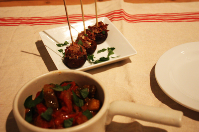 たこ焼きじゃないよ、生ハムのラグを詰めたブラウンマッシュルームだよ。