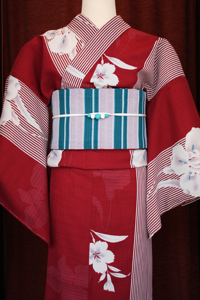 大人なゆかたですね。シンプルなので帯で遊びましょう。