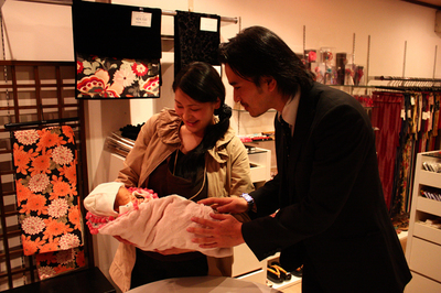 以前にブライダルでワズのキモノを使ってくれた金沢のお客様が久しぶりに来てくれました。もちろんパグの虎徹くんも一緒です。