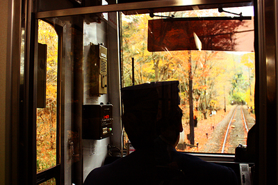 鞍馬に行くには、出町柳駅という駅から叡山電鉄という電車に乗るのですが、この電車がまたローカルでいい味出しています。ほとんどの駅が無人駅。山に入ってゆくと渓谷を通り「紅葉のトンネル」というのを通るのです。