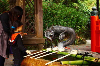 途中、龍の口から出る水で手を清めてみました。