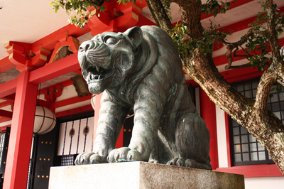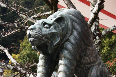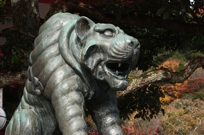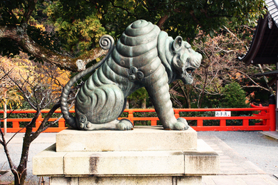 そして、本堂に到着しまして、ここからが今回の本当の目的!!!寅です、トラ!!この鞍馬寺には狛犬ではなく「狛寅」がいるのです。阿吽の寅です。