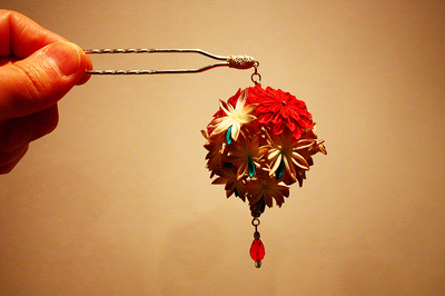 昔からの伝統的技法、つまみ細工のカンザシです。