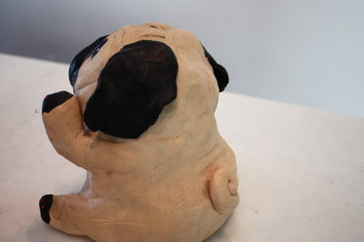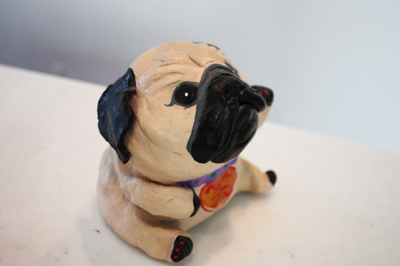 深井さんは基本的にネコ人形しか作らないのですが、無理を行ってパグを作ってもらったのです。これがまた良くできてる。