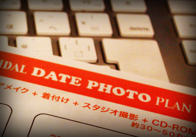 で、それを全てプリントして、袋詰めが終わって・・・気になった。BRIDAL DATE PHOTO PLAN ・・・データフォトのデータって DATE でいいのか?