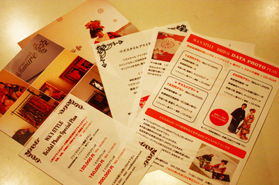 で、そんな新プランのフライヤーなどをいろいろとつくりまして、ブライダルのフライヤーセットを作りました。