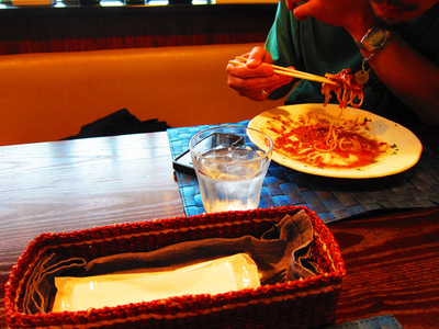 自分のスタイルを崩さない男はパスタも箸で食う。