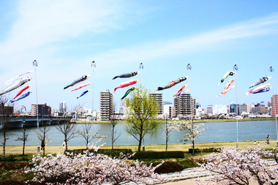 やすらぎ堤 BANDAI SIDE には鯉のぼり。