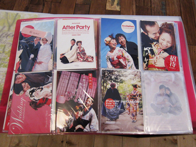 で、会場に今までフクフクで撮影をした方々のウエルカムボードや招待状などのサンプルがおいてありまして、僕も見た事のないのがたくさんありました。