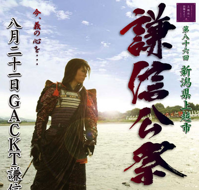 僕が上越にいた頃はこんなお祭り、やってるのは知ってたけど大して話題にもならなかったのですが、5年前だね・・今までは市長や地元の人がやっていた上杉謙信役に、当時NHK大河ドラマ「風林火山」で上杉謙信公役を演じていたGACKTを起用したのです。