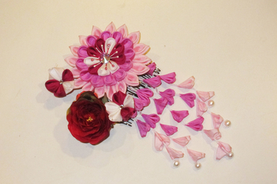 やはりこのような摘み細工の飾りは人気があります。
