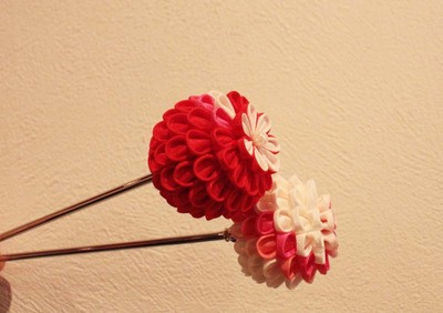 こんな可愛いカンザシもありますよ。摘み細工カンザシ。