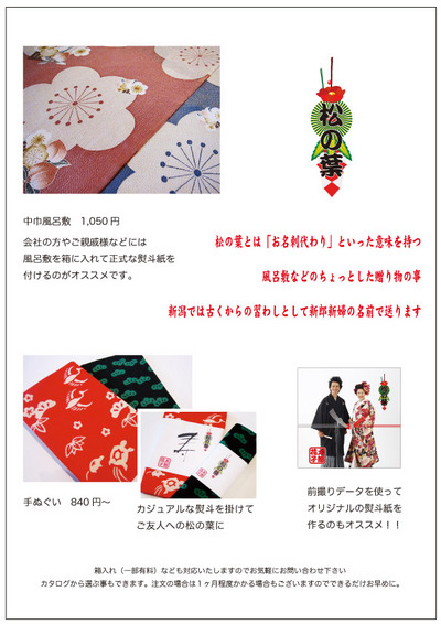 また、ブライダル関連では松の葉などのギフトもいろいろとやっていきますので、ぜひご利用くださいね。