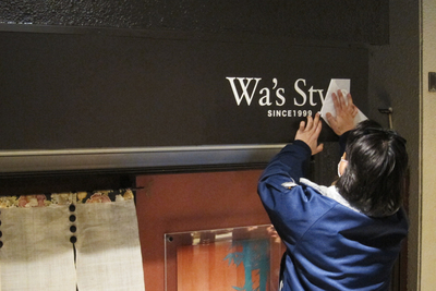 で、それを看板屋さんに作ってもらって貼ってもらう。