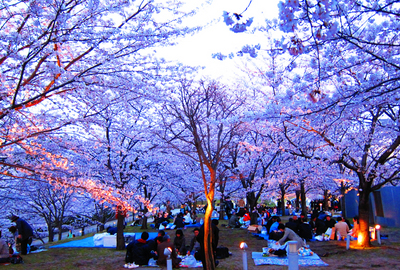で、夕方の白山公園、花見全開!!