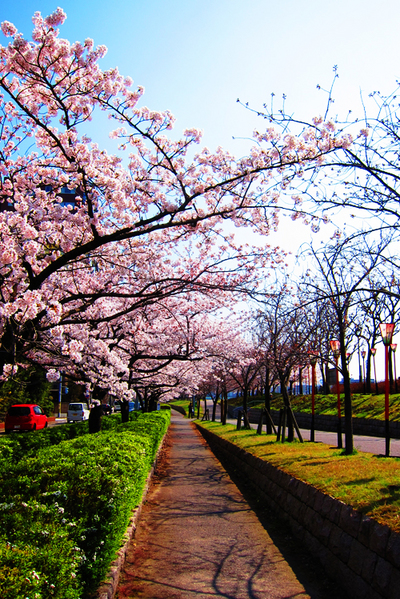 で、今朝は開店前にやすらぎ堤を散歩、満開やね!!
