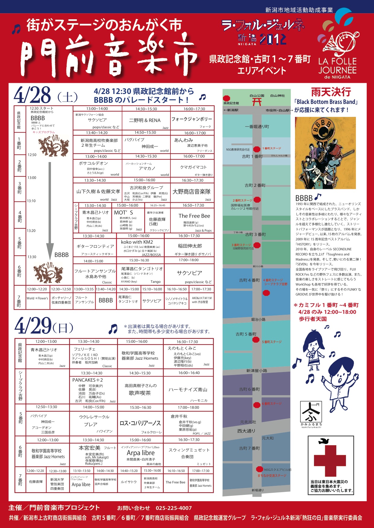 明日28日は カミフル門前音楽市 開催のため12時から18時まで車両通行止めで歩行者天国となりますので是非上古町にお越しください!!(僕いないけど・・・)