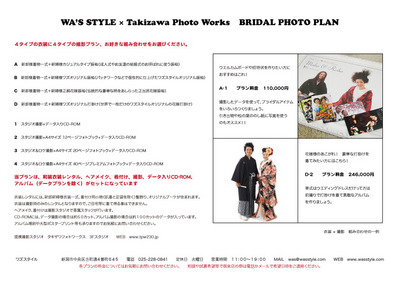 そして、ブライダルと言えば、タキザワフォトワークス と一緒に企画してた新プランがやっとまとまりました、今までよりもわかりやすくなったといいますか、お客様のご希望にいろいろと添えるようになったんじゃないかと思います。