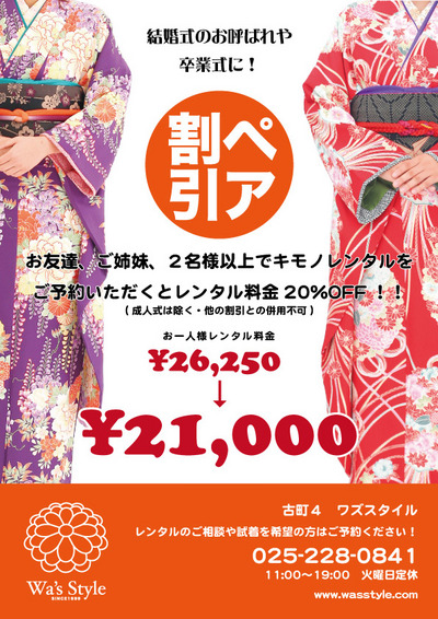 キモノレンタル ペア割引 開始です!