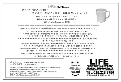 友人がシェフをしてるお店 LIFE で 友人のコップ屋さん SPiCA がファイヤーキングの講座を開催します。
