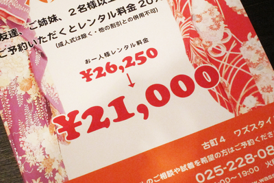 さて、昨日発表された新プラン、キモノレンタルペア割引 ですが、ニュースページ に詳しい事を載せました。(そんなに詳しく書いてないか・・)