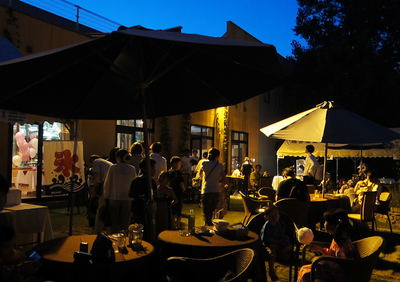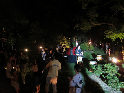 車で40分くらいですかね、広大な敷地に建つ立派なお屋敷です。今日はそこのお庭を解放しての夏まつり。いつもは黒服なスタッフの皆さんも今日は全員ユカタです。もちろん僕もユカタで行ってきましたよ。