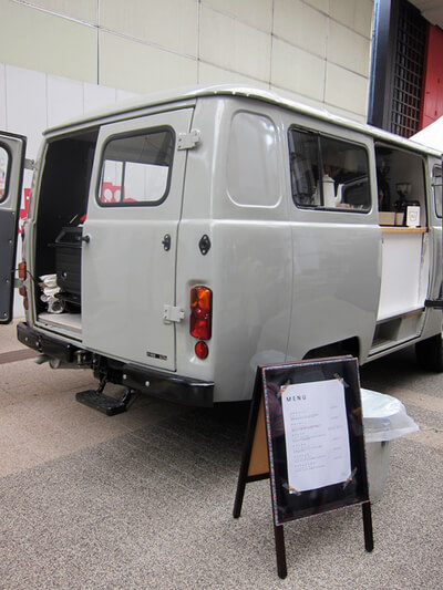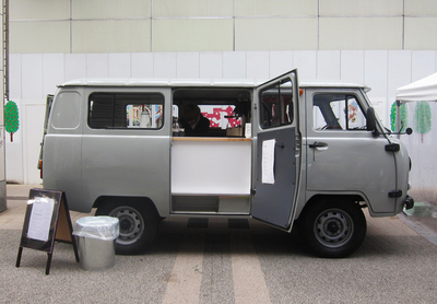 ロシア車で、この何とも言えないルックスに一目惚れしたのは4年前くらいかなー・・・で、その車が5番町にコーヒーの移動販売車として来てたー!!