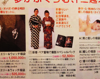 そうなのです、三越さんからお声掛けいただきましてコラボ福袋を企画しました。2人ペアでキモノ着て記念撮影しようよってプランです。