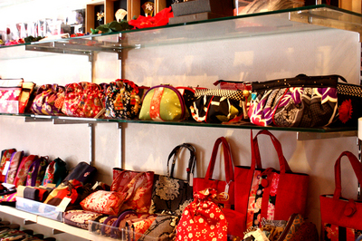 それに伴い、今まで手拭いが並んでいた場所をポーチなどの小物にしましたら・・こちらもいい感じ。