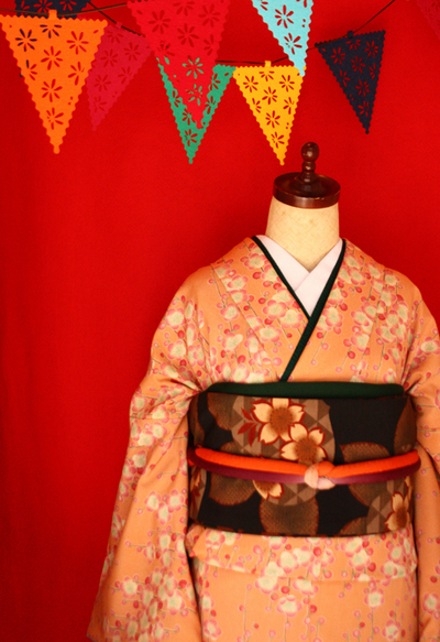 春なのでショーウインドウのキモノも春らしく。