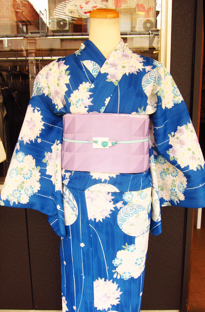 となると、あまりゆかたらしい感じよりも、キモノっぽいといいますか大人な感じのものがいいかと思い、いろいろと試着をして素敵な1枚をお買い上げいただきました。