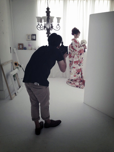 昨日は打掛けスタイルでのブライダル撮影でした。ブログアップの了承をいただいたので、撮影風景を一枚載せます、マジかわいかったですよー!!