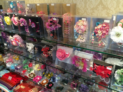 しかしワズはキモノ屋です(レンタルばかりであまり販売用のキモノはありませんが 笑)卒業式用に髪飾りや小物を見に来る方も2月にはいって一気に増えてきました。