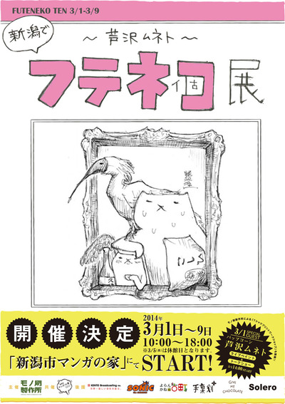 まずは告知です、いつもお世話になっている モノ刷製作所 主催のイベント フテネコ展 が 新潟市マンガの家 で3月1日より始まります。ワズの外にも大きなポスター貼ってありますが、実はボク良くわかってません 笑