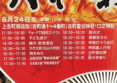 当日のタイムスケジュールがうちわに書いてあるのはいいね、これは上古町の各店の前などにたくさんありますので是非お持ちください。当日もこれを持ってればスケジュールがわかる!