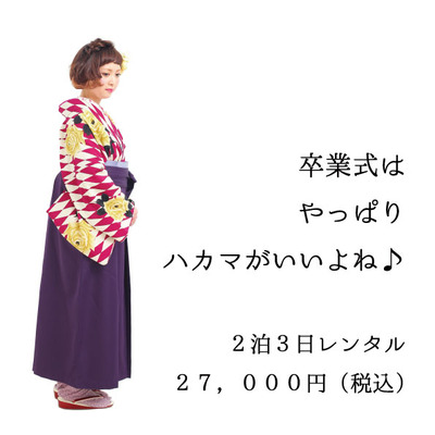 人生一度きりです(いや、何回着てもいいんだけど)卒業式は是非可愛いハカマスタイルで思い出を作りましょう。