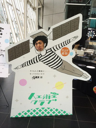 で、戻ってからちょいとネクストのアトリウムに行きまして、今日から始まった 人工衛星クラブ を見てきました。時間が無かったので、とりあえず定番の顔出し看板で一枚 笑