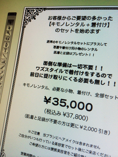 さて、昨年の10月くらいから考えていたのですが、春の結婚式のお呼ばれでキモノを見に来る方も増えてきたので新プラン作りました。