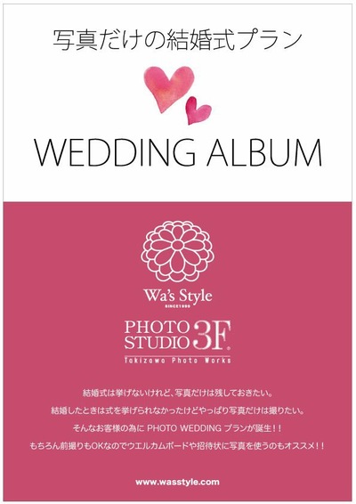ワズでは タキザワフォトワークス というフォトスタジオと組んで撮影プランを多数ご用意しております、今だと 冬季限定プラン もありますので是非ご検討ください。
